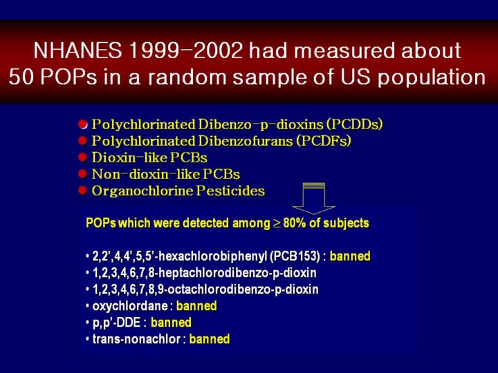 읽을 것..Ceneter for Diasease Control found all the individual POPs did not exceed currently recommended limit. |