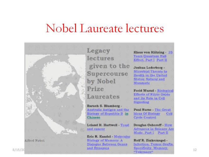 We have 70 lectures from Nobel prize winners, two lectures by heads of the NIH, the former head of the CDC, the former Surgeon General of the US. We have 32 IOM Members with 84 Lectures as well 116 lectures from 55 NAS members. We have over 200 outstanding lectures from Arab/Muslim countries. The lectures from the OIC countries are being used world wide to teach about prevention. We already have a set of wonderful Islamic Health lectures. http://www.pitt.edu/~super1/ighn.htm . These are the highest rated lectures for Islamic health on the web (1 and 2/ 180,000).