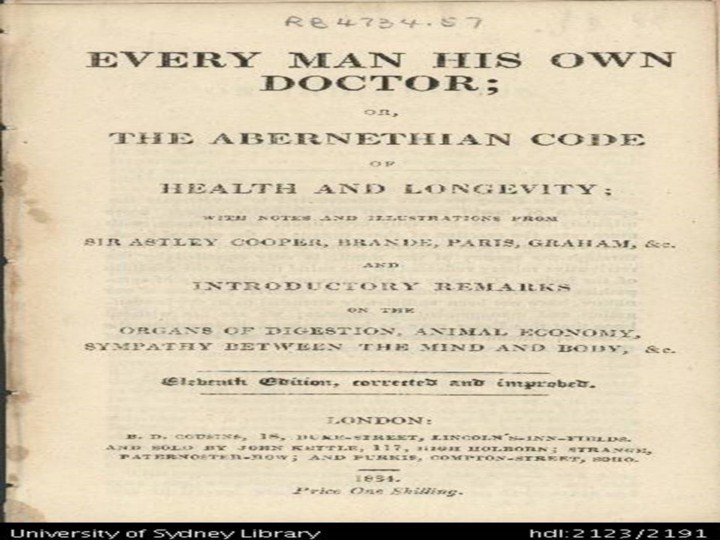 Especially in the newly settled areas there were few if any doctors, and John Tennet’s book, Every Man His Own Doctor, published back in the 1730's, was a must for every community. |