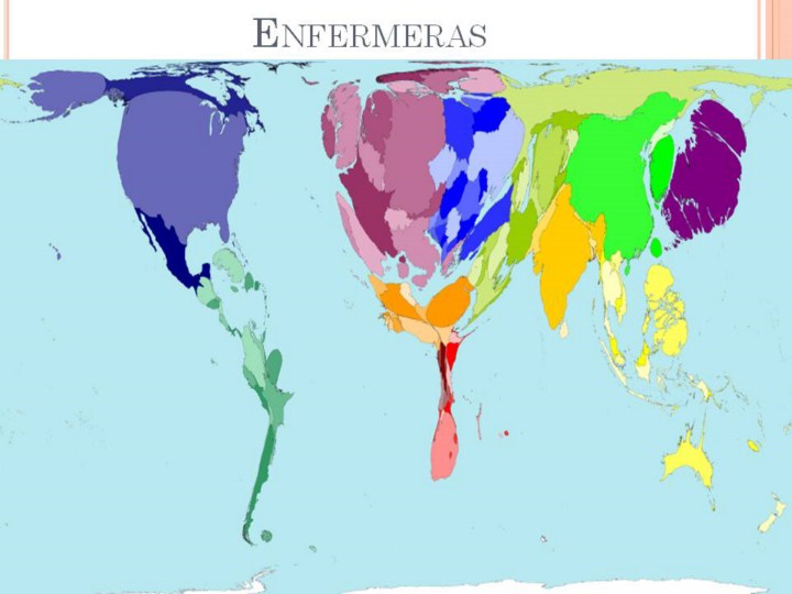 Geografía está modificada por el tamaño relativo de población de enfermeras en esta gráfica de globos De acuerdo al tamaño del globo, hay más enfermeras en los países desarrollados. |