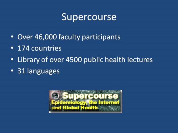 This course has been developed using lectures from the Global Health Network Supercourse Project www.pitt.edu/~super1