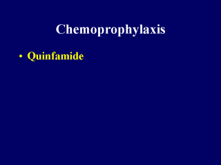 | Quinfamide is a antiamoebic drug whose
