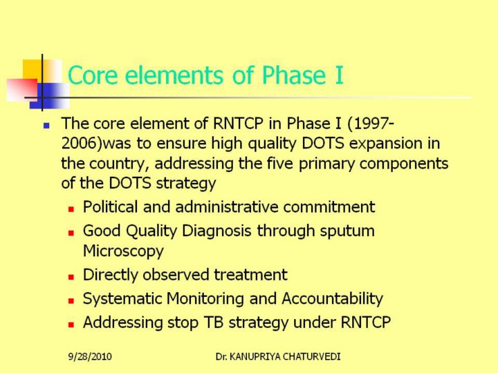 indicators are monitored regularly at every level of the health system and regular supervision ensures quality of the program. RNTCP shifts the responsibility for cure from the patient to the health system.