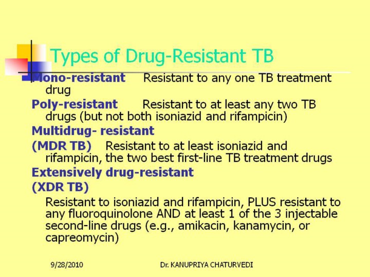 The emergence of drug resistant TB, and particularly MDR-TB, has become a significant public health problem in a number of countries and an obstacle to effective TB control. A large scale population based survey in the state of Gujarat and Maharashtra has indicated multi drug resistance levels of <3% among new TB cases and 14-17% among previously treated TB patients. Though the rate of MDR-TB is relatively low in India, this translates into a large absolute number of cases, with an estimated annual incidence of 131,000 cases of MDR TB in the country. |