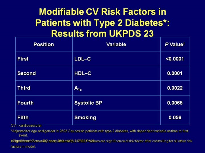 Reference Turner RC et al. Risk Factors for the coronary artery disease in non-insulin dependent diabetes mellitus: United Kingdom prospective diabetes study (UKPDS:23). BMJ. 1998;316:823-828. |