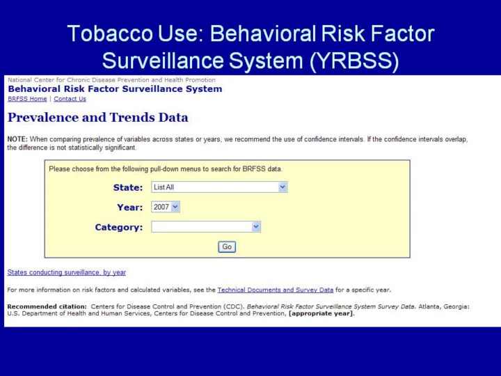 The YRBSS data can be accessed to identify smoking patterns and trends.