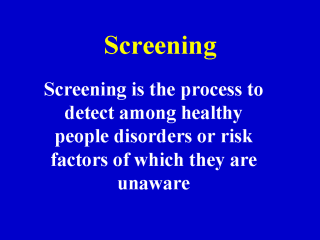 individuals. Screening was the tool used by epidemiologists in this respect. |