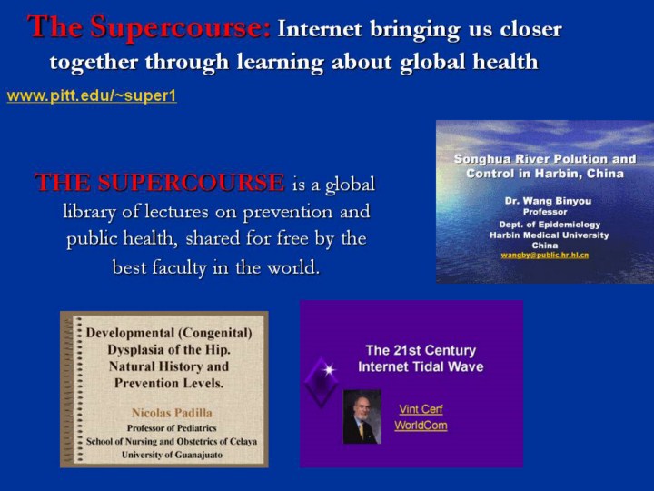 Supercourse www.pitt.edu/~super1 currently has over 4,650 lectures shared by over 46,000 faculty members in 172 countries. Supercourse is a teaching supplement model, where the teachers of the world share their best lectures. A growing number of the Supercourse lectures are dedicated to the theme of global health research