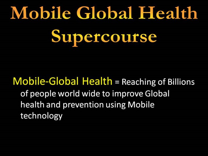 The concept of Mobile-global health is simple. For the first time we can reach billions of people world wide using cell phone, for pennies. There are 4.5 billion cell phones for 6.2 billion people. |