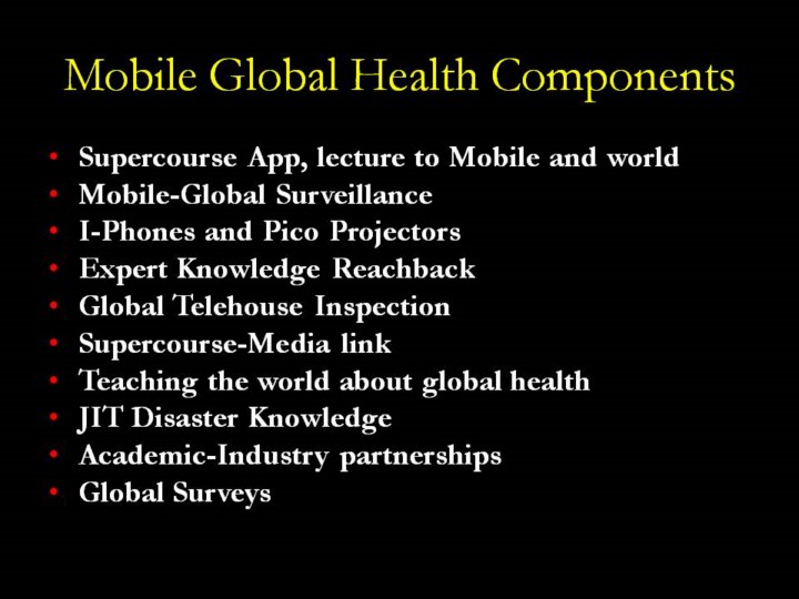 some of the ways by which a Mobile Global Health Supercourse could develop.