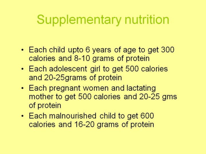 This includes supplementary feeding and growth monitoring; and prophylaxis against vitamin A deficiency and control of nutritional anemia. All families in the community are surveyed, to identify children below the age of six and pregnant & nursing mothers. They avail of supplementary feeding support for 300 days in a year. By providing supplementary feeding, the Anganwadi attempts to bridge the caloric gap between the national recommended and average intake of children and women in low income and disadvantaged communities. Growth Monitoring and nutrition surveillance are two important activities that are undertaken. Children below the age of three years of age are weighed once a month and children 3-6 years of age are weighed quarterly. Weight-for-age growth cards are maintained for all children below six years. This helps to detect growth faltering and helps in assessing nutritional status. Besides, severely malnourished children are given special supplementary feeding and referred to medical services.