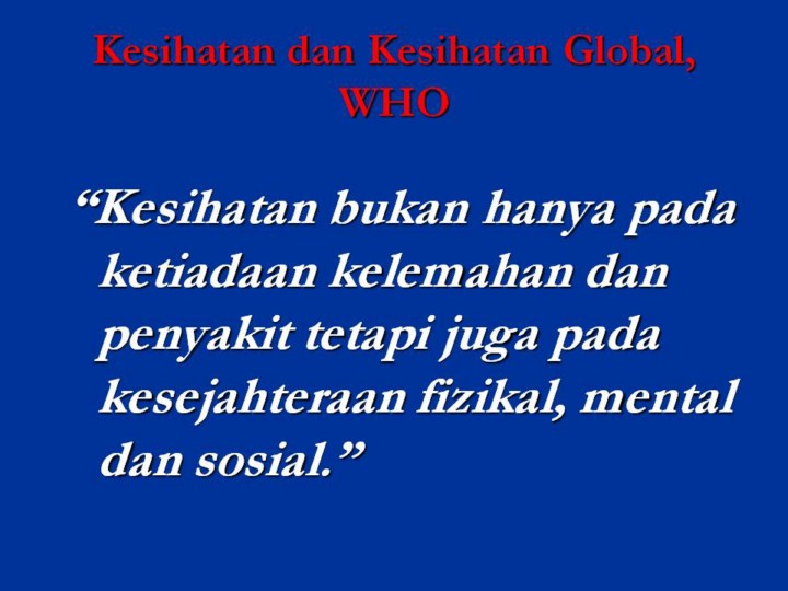 WHO telah terbitkan definisi klasik untuk Kesihatan, yang mana amat penting untuk kesihatan dalam negara kita dan seluruh dunia |