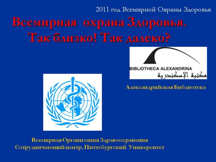 Эта лекция посвящена концепции «ГлоЛокал», отражающей изменения в концепции охраны здоровья, включающий в себя как глобальные так и местные концепции охраны здоровья. Проект Суперкурс, объединяющий специалистов по всемирной охране здоровья, сотрудничает с Александрийской библиотеке в Египте по разработке одного из крупнейших хранилищ лекций по всемирной охране здоровья. В Питтсбурге, большинство работ ведется через сотрудничающий центр ВОЗ по мониторингу заболевания и телекоммуникаций, под руководством доктора Рональда Лапорт. Доктор Фаина Линькова ответственна за создание и изменение этой лекции. Задача этих слайдов: 1) повышение степени осведомленности о всемирной охране здоровья среди преподавателей и студентов медицинских образовательных учреждений, а также других профессионалов, связанных с общественным здравоохранением и другими смежными профессиями; 2) развитие сети всемирной охраны здоровья среди студентов, для решения местных и глобальных задач здравоохранения.