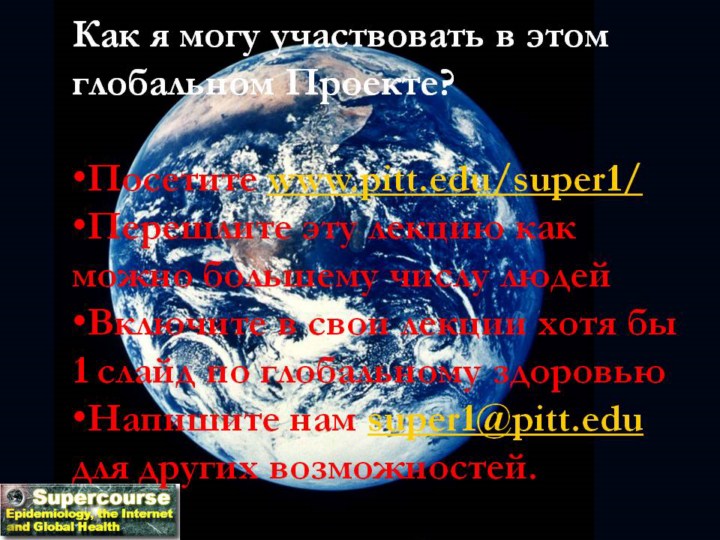 в свои лекции хотя бы 1 слайд по глобальному здоровью.