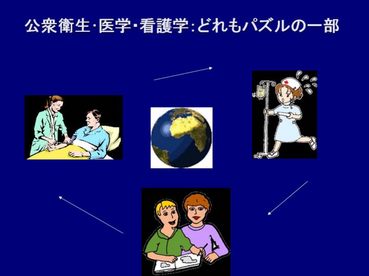 もし、医学・公衆衛生学・看護学の学生が一緒に行動すれば、グローバルヘルスを変えることができます。グローバルヘルスのサイエンスにおける共同の取り組みにより、地域・経済など、現在我々を隔てている境界を乗り越えることができるようになります。