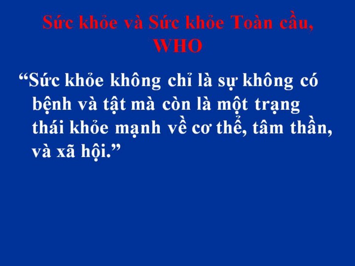 Tổ chức Y tế Thế giới đã công bố định nghĩa cổ điển về Sức khỏe, mà rất quan trọng cho sức khỏe trong các quốc gia của chúng ta và khắp thế giới |