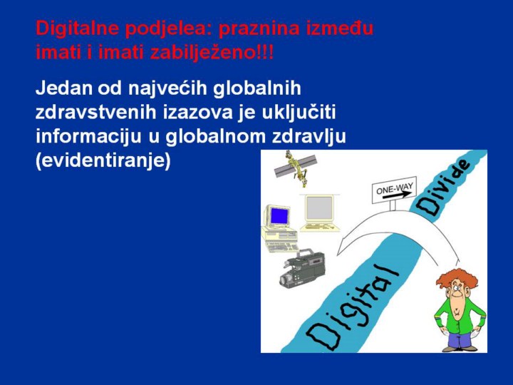 Uz pridruženost različitih oboljenja, mi ćemo razmatrati najveći izazov u globalnom zdravlju a to je uključivanje informacija. Mi moramo podijeliti informaciju u područja istraživanja o globalnom zdravlju preko digitalnih medija.