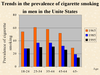 in age-specific prevalence of cigarette smoking in men in the US. National Center for Health Statisitcs. Health, United States, 1999 With Health and Aging Chartbook. Hyattsville, Maryland: 1999. pp 212. |