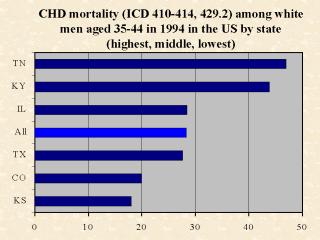 3-fold difference in CHD mortality among white men aged 35-44 by state in the United