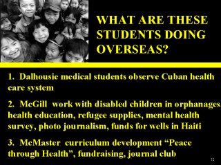 schools + village workers, northern ON continuing education, Camp Trillium, CNIB 5. U of Alberta hypertension/diabetes study in Guyana, primary health care + education, hook worm Dx/Tx in Tanzania, AIDS education, FAS edu in Edmonton, Operation Eyesight, text collection |