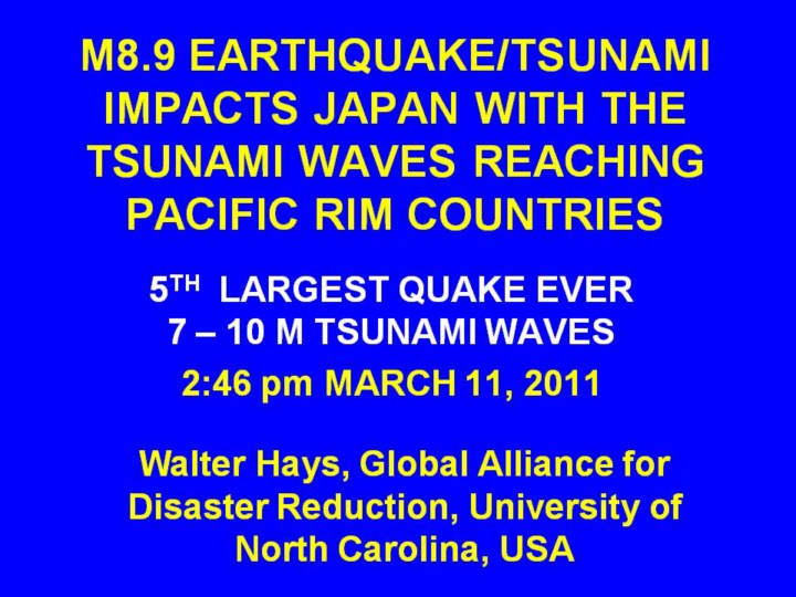 International Atomic Energy Agency (IAEA) update on Japan Earthquake -http://www.iaea.org/newscenter/news/tsunamiupdate01.html