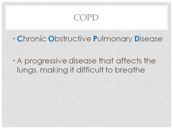 Chronic Obstructive Pulmonary Disease is a life-threatening lung disease. It is considered a progressive disease meaning that the disease grows more severe over time. |