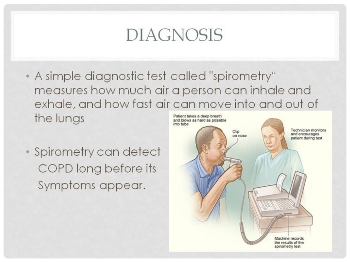 During this painless test, a technician will ask the patient to take a deep breath in. Then, they will blow as hard as they can into a tube connected to a small machine. The machine is called a spirometer.