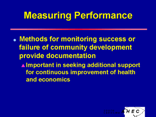 The Institute of Medicine is currently creating a system to measure performance in the community. It is a set of indicators that profile a community, its processes, and environment. Reading: Improving Health in the Community: A Role for Performance Monitoring. Durch, Bailey, Stoto.