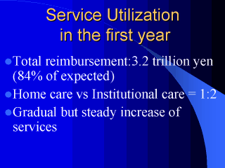 case. According to the announcement of the Central Federation of National Health Insurance, a public corporation responsible for reimbursement of the insurance claims, the total disbursement in FY 2000 will be 3.2 trillion yen or 84% of what was originally expected. |