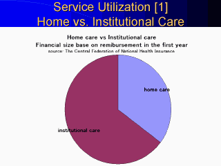 | The breakdown of the disbursement was: home care vs institutional care was approximately 1:2, medical vs. non-medical services was approximately 1:1.[Graph1,2,3] |