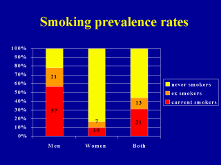 The survey revealed very high rates of smoking amongst men and lower rates amongst women.