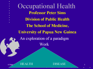 and the health and well being of the worker. A third of our lives are spent working. We are defined by our work-our social status, our income, our belonging to a community. |