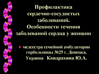 Юлия Александровна 1975года рождения. С 1992 по 1994гг. училась в Донецком медицинском училище. С 1994 по 2000г. работала в городской больнице №25 г.Донецка, в терапевтическом отделении стационара. С 2000года работает в поликлиническом терапевтическом отделении городской больницы №25. |