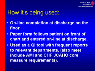 a paper version of the tool on chart to collect data and enter at the time of discharge.
