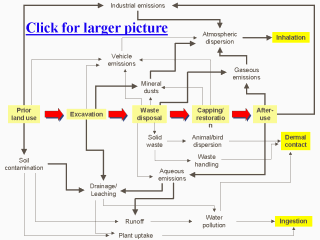 exposure Landfill sites are highly complex biological and chemical processors. As a result, a wide range of emissions may occur from landfill sites, which may be dispersed through the environment via many different pathways. |