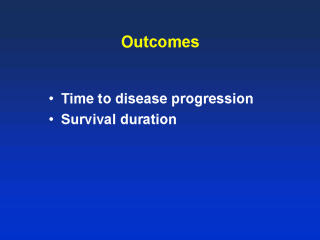 common symptoms of lung cancer Tightness in chest Shortness of breath Coughing TOI: Physical (“do you feel ill”) + Functional (“Able to work/Sleep”) + LCS Focussed on the LCS and TOI b/c they are the most clinically relevant QOL endpoints in lung cancer trials. Higher scores on both represent better function or fewer symptoms. Change scores: We used the 12 week follow-up (beginning of the 5th cycle of treatment) since it provided an optimal balance between having sufficient time to note significant clinical change, without having excessive missing data due to mortality or progression. The change score is the 12 week assessment - baseline; so that positive scores represent improvements and negative scores represent declines in function. |