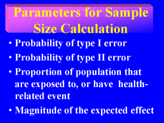 | After choosing the appropriate equation for sample size calculation, the researcher needs to set values for the parameters needed to solve the equation. |