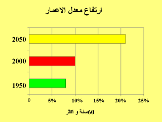 | معدل الحياة يجب ان نضعه بالاعتبار. الأسبوع الماضي، أصدرت الأمم المتّحدة تقريرا على الشيخوخة العالمي. اليوم تقريبا 10 % من سكان العالم يكونون باعمار 60 أو أكبر سنّا. بحلول الـ2050، ستتضاعف النسبة. في الدول المتقدمة، الاعمار أكثر من 60 يمثلون خمس السكان، بحلول الـ2050، سيمثلون الثلث. أثناء نفس الفترة، الاعمار أكثر من 60 في الدول النامية ستزيد اكثر من الضعف من 8 % إلى 20 %. (المجموعة العمرية الاكثر تزايدا الاعمار اكثر من 80، حيث يزيد 3.8 % سنويا. ) هذه التغييرات لم توازى اى قرن مضى |