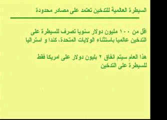 لسوء الحظ و برغم من زيادة معدلات التدخين بالدول النامية فان البرامج المسئولة عن السيطرة عليها لم تستكمل بعد. ان برامج مكافحة التدخين العالمية تعتمد على امدادات محدودة . قامت الجمعية الامريكية للسرطان بعمل احصائيات و وجدت ان اقل من 100 مليون دولار سنويا على مكافحة التدخين عالميا باستثناء امريكا، كندا و استراليا. فى حين انه 1.8 بليون دولار يتم صرفه من قبل امريكا فقط. تلعب الجمعية الامريكية دورا كبيرا فى ذلك