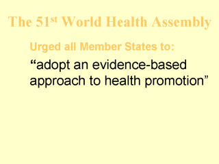 evidence-based health promotion is a timely one given the recent resolution of the World