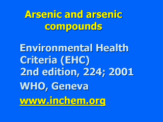 compounds: Environmental Health Criteria (EHC) Monographs 224 (2001): Arsenic and arsenic compounds. |