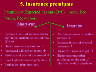 On one hand, new technologies have always been associated with increase in costs of services. The cost of initial system installation is indeed high. Thus, possible initial increase in prices for medical care can be presumed, leading to higher charges on the part of insurance companies -> adding financial burden on average enrollees whose willingness to pay may further diminish -> shrinkage of pool of insured people -> higher insurance premiums -> aggravate further withdrawals (potential vicious circle). However, further utilization of CDSS implies diminishing marginal value.