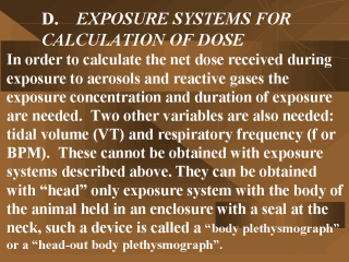 imposed at the neck of the animal. The volume displacement can be measured in two ways. A pressure transducer is attached directly to a port on the plethysmograph; the change in pressure created with each breath will be proportional to the change in volume. A pneumotachograph, to which a differential pressure transducer is attached, is connected to a port on the plethysmograph. For further details on plethysmographs, see Alarie, Y., Iwasaki, I. and Schaper, M. Whole body plethysmography in sedentary or exercise conditions to determine pulmonary toxicity, including hypersensitivity induced by airborne chemicals. J. Am. Coll. Toxicol. 9, 407-439, 1990. |