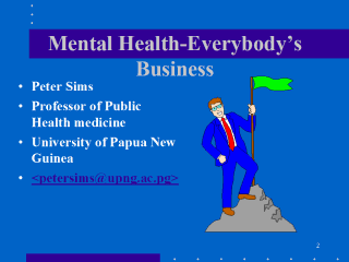 jobs-even unemployment. I came to the conclusion that Marital Breakdown was a major Public Health Problem. Mental stress and distress is part of the human predicament, remarkably most of the time human beings survive and recover from incredible experiences-Auschwitz, Rwanda, Childhood abuse. When the ability to cope is pushed too far then mental anguish and illness may result. It is then helpful to try to define mental illness and measure the size and shape of the problem, to identify the determinants, to provide rational therapy and effective prevention. |
