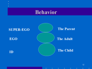 as we do-the range of human behavior from Ape to Angel? Is this a consequence of our innate personality, the situation in which we are with its pressures for uniformity or expectation.(Doctors are expected to stay calm and assert authority in very frightening situations), or previous experience and our own free choice? To what extent are we influenced by our subconscious mind and by the great stories, ideas and myths of the world? E.g. Good versus Evil. Sigmund Freud,(1856-1939) a man whose ideas still ring controversially and passionately round the world suggested that there are three components in our make -up. The super-ego (The parent figure) the ideal behavior we strive for, rational, kindly, moral,thoughtful, logical, just, fair…….. The ego (The adult figure) reality, a bit messy, trying to make sense of things, sometimes doing evil by mistake when trying to do good, frail and making mistakes but trying again. The Id (the child) the uncontrolled fun loving primitive, full of lusts and instincts, demanding instant gratification, selfish, poor attention span. |