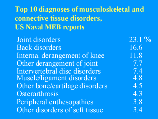 injuries. Joint disorders, back disorders, and knee problems may represent the long-term