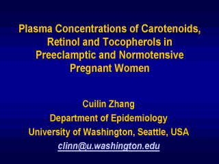 | Based on "Plasma carotenoids, retinol and tocopherols in preeclamptic and normotensive pregnant women", published in Am J Epidemiol 2001; 156(3):572-80. This paper received the Student Prize Paper Award (First Prize), Society for Pediatric and Perinatal Epidemiologic Research, USA, 2000 |