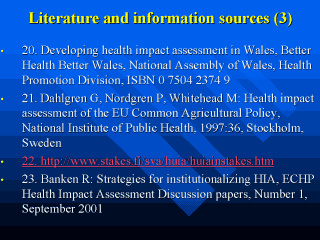 Out of cited literature on this list of readings one can find also other interesting resources and papers related to health impact assessment methodology.