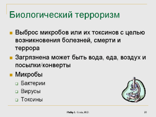 Chemical and Biological Terrorism, an overview of the threat. Phillip L. Coule, M.D.