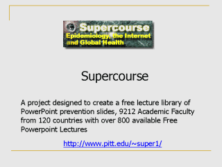 | The lecture has been developed by Supercourse team for the Global Health Network. This is an international program designed to bring the Internet into the prevention of Terrorism and all forms of disease. |